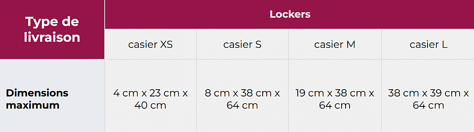 DIMENSIONS COLIS LOCKER
